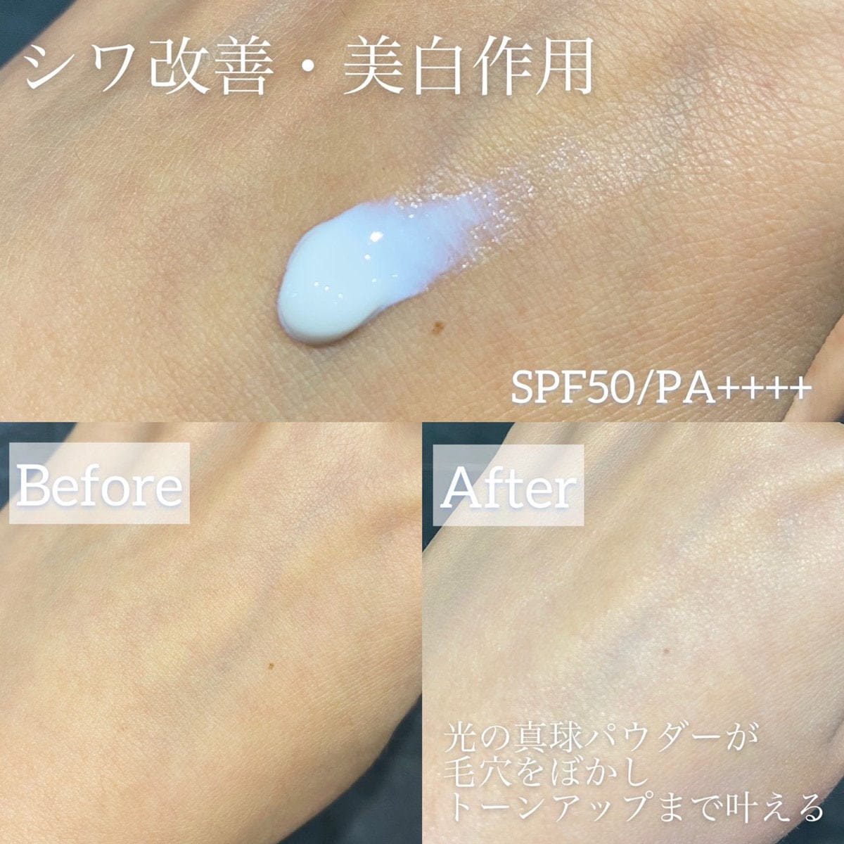 真球パウダーが毛穴を埋めて表面を滑らかに整え、光の効果で自然なツヤを導きます。