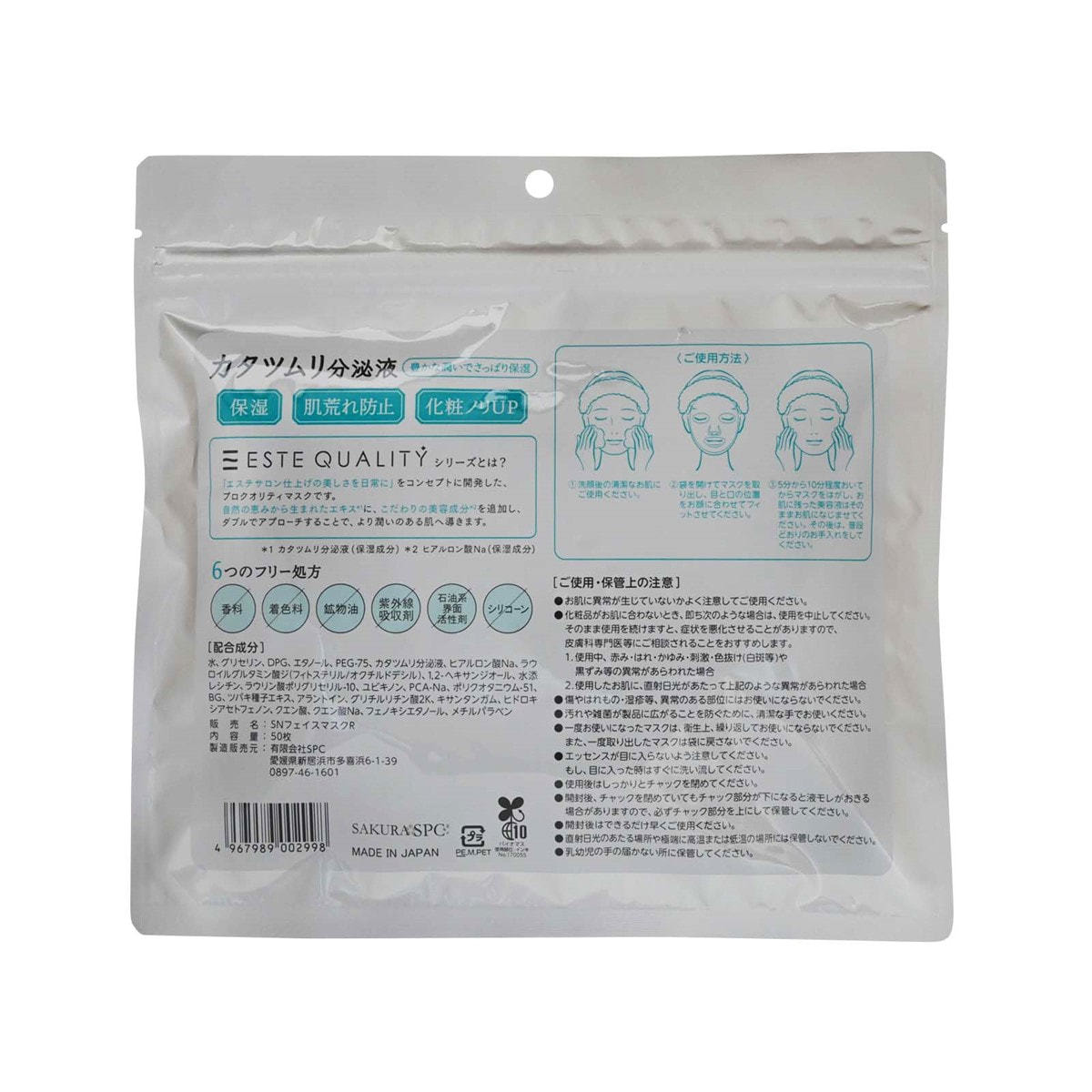 商品名:SPC【かたつむり粘液配合】カタツムリフェイスマスク 50枚入り