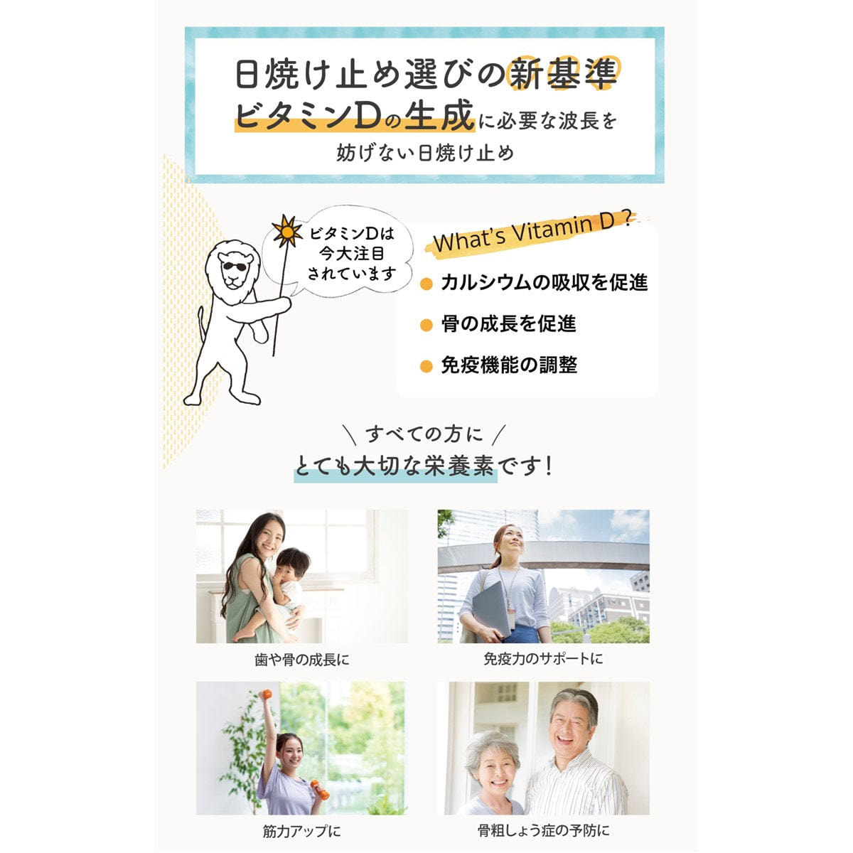 私たちは紫外線防止の重要性を啓蒙し、ビタミンD欠乏の世界的な流行に対し取り組んでいます。